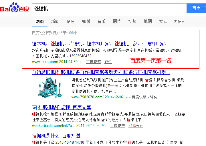 關鍵詞“銼鋸機”在百度排名:第1頁第1名