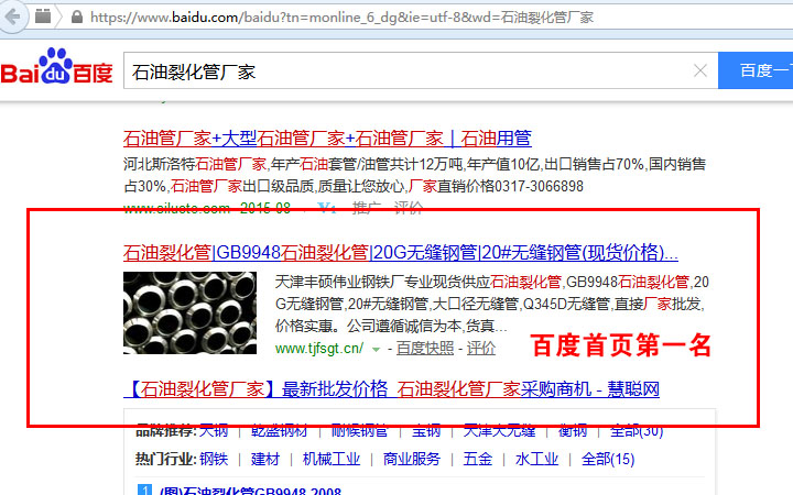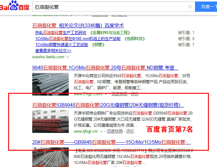 關(guān)鍵詞“石油裂化管”在百度排名:第一頁第七名