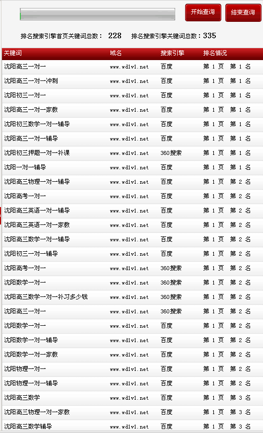 關鍵詞在各大搜索引擎排名情況: