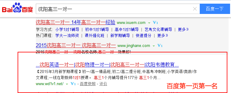 關鍵詞“沈陽高三一對一”在百度排名:第1頁第1名