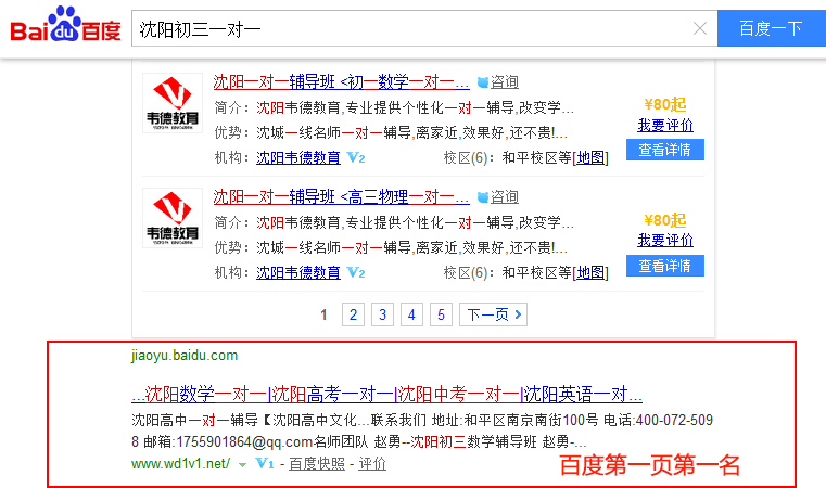 關鍵詞“沈陽初三一對一”在百度排名:第1頁第1名