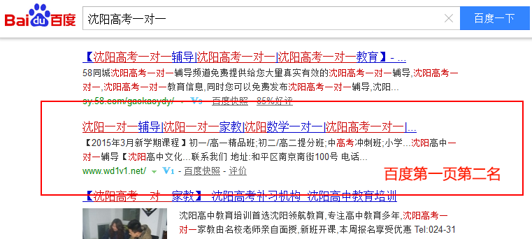 關鍵詞“沈陽高考一對一”在百度排名:第1頁第2名