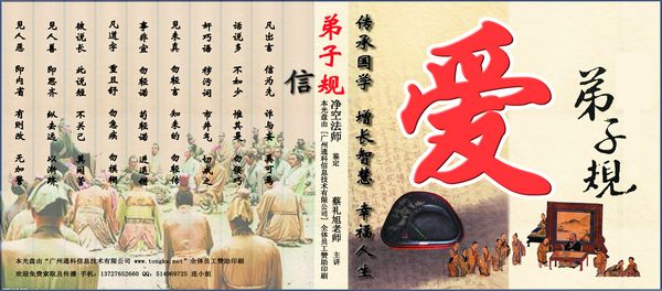 弟子規(guī)總序開(kāi)篇是這樣教育我們的:弟子規(guī),圣人訓(xùn),首孝悌,次謹(jǐn)信。泛愛(ài)眾,而親仁。有余力,則學(xué)文。它從人之根本出發(fā),教育我們要從這幾個(gè)方面對(duì)自身進(jìn)行德行的塑造。首孝悌,就是說(shuō)做人首先要心中有愛(ài),要孝敬父母。一個(gè)人如果連對(duì)他有養(yǎng)育之恩的父母都不能尊敬的話,那么他就喪失了做人的根本,對(duì)長(zhǎng)輩、對(duì)領(lǐng)導(dǎo)、對(duì)同事、對(duì)兄長(zhǎng)、對(duì)朋友就更談不上發(fā)自內(nèi)心的尊重,他所做的事情也就很難得到認(rèn)同。次謹(jǐn)信,告訴我們做人要謹(jǐn)慎,要講信用,也就是要誠(chéng)信為本。小到一個(gè)人、大到一個(gè)企業(yè),如果不能誠(chéng)實(shí)待人,那么他依靠什么立足社會(huì)呢?泛愛(ài)眾,而親仁。有余力,則學(xué)文。意思是和大眾交往時(shí)要平等仁和,要時(shí)常親近有仁德的人,向他們學(xué)習(xí),以上這些事是學(xué)習(xí)的根本,非做不可。如果做了還有余遐,還要學(xué)習(xí)一些其它方面的知識(shí)充實(shí)自己。這是教育我們?nèi)绾未颂幨隆⑷绾螌W(xué)習(xí),要經(jīng)常學(xué)習(xí)別人的長(zhǎng)處,來(lái)彌補(bǔ)自己的缺點(diǎn),從各個(gè)方面來(lái)約束自己,提高自身的素質(zhì)和修養(yǎng)。