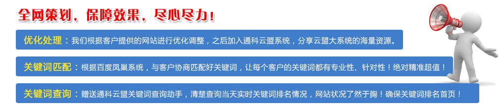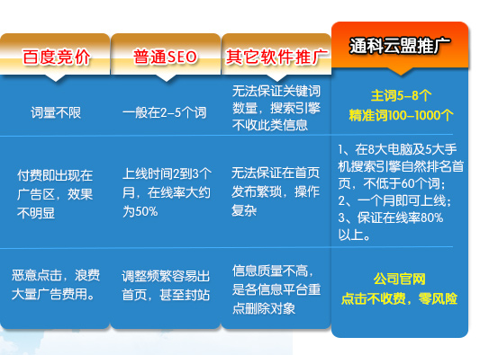 直接加入通科云盟,成為聯盟會員,在上千個網站同時出現,海量增強曝光度!海量友情外鏈、海量導航主關鍵詞推廣!國內獨此一家!